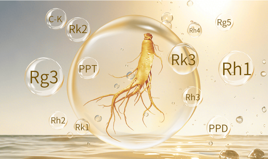 人参皂苷是从人参、西洋参、三七等人参属植物中提取的一类天然成分,它的分子量大、活性低、易上火、而且在人体内很难被吸收利用,生物利用度差。稀有人参皂苷是人参皂苷经过转化后形成的次级代谢产物,在人参中的含量极低,仅为十万分之一左右,极其珍贵,被称为人参皂苷家族中的“贵族”。具有分子量小、不易上火、人体吸收率更好、抗癌活性更强大、生物活性更强、药理作用丰富等特点,在抗肿瘤、抗炎、神经保护等方面的功效更为显著。常见的稀有人参皂苷包括Rg3、Rh1、Rh2、Rg5、C-K、Rk1、Rh3、Rk2、 Rh4、Rk3、aPPT、aPPD等。