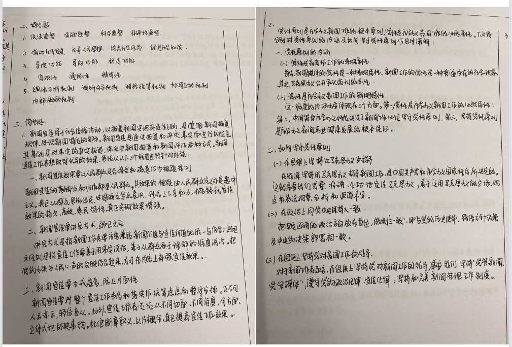 第一次实战,大概率是写不完的!另外很多人会觉得简答题性价比不高,将其置于论述题之后再作答也无妨。总之,这一切,你需要通过多次训练,才能在强压力环境下,兼具手写速度、布局美观的同时,完整高效地展示你的才学与能力。