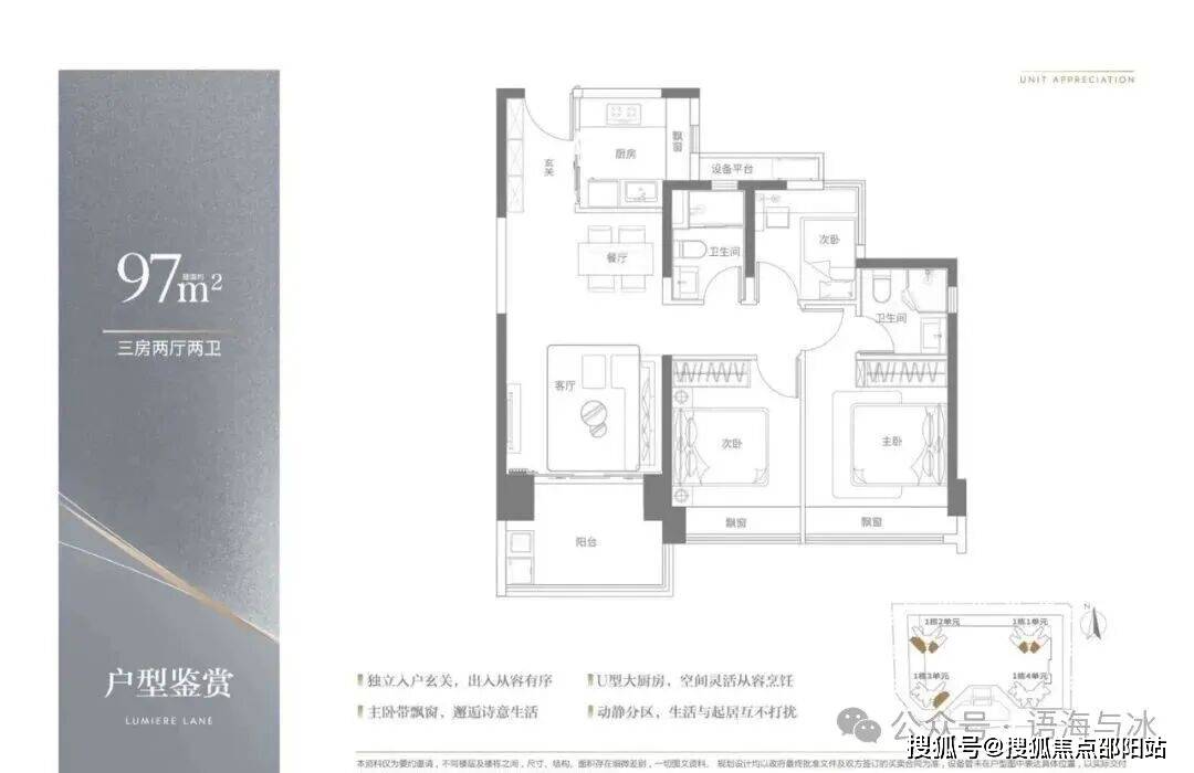 【97平米3房2厅2卫】动静分区,3开间朝南,核心园林景观,高区无敌视野;