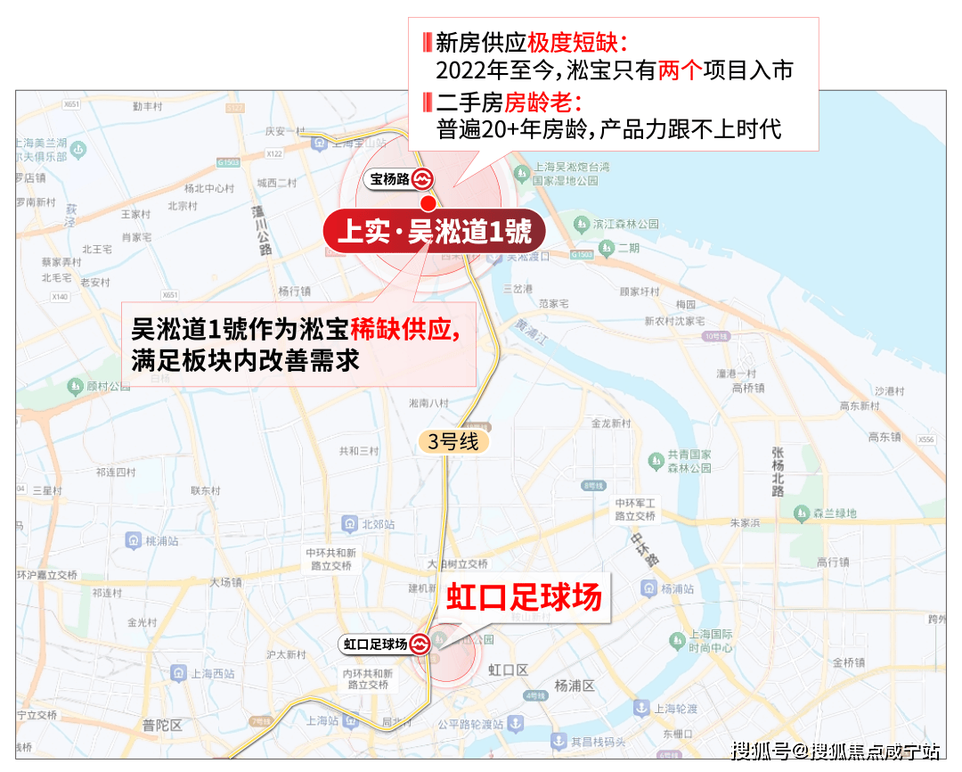 在当下取消联动价,新房普涨的环境下,吴淞道1號手握6.3万/㎡联动价,600万级即可购置真地铁房,成为楼市性价比之选,你要知道淞南已700万级。何况长期以来,淞宝土地资源开发接近饱和,2022年至今新房只有