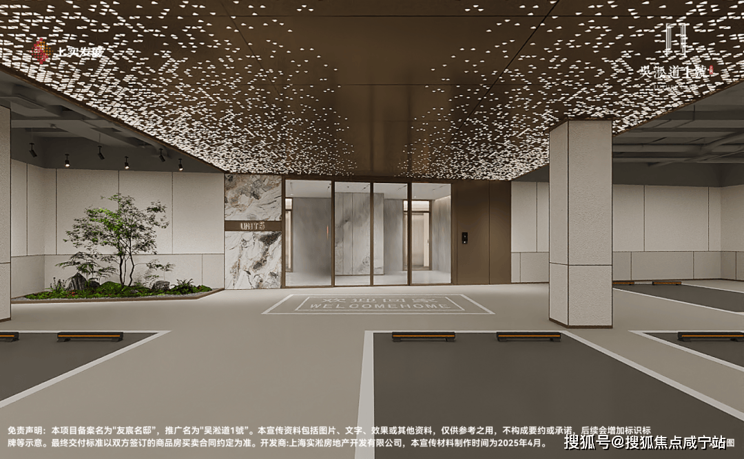 另外,市场上常见单入户门厅,而吴淞道1號采用地上地下双精装入户门厅,质感岩板一体铺就。