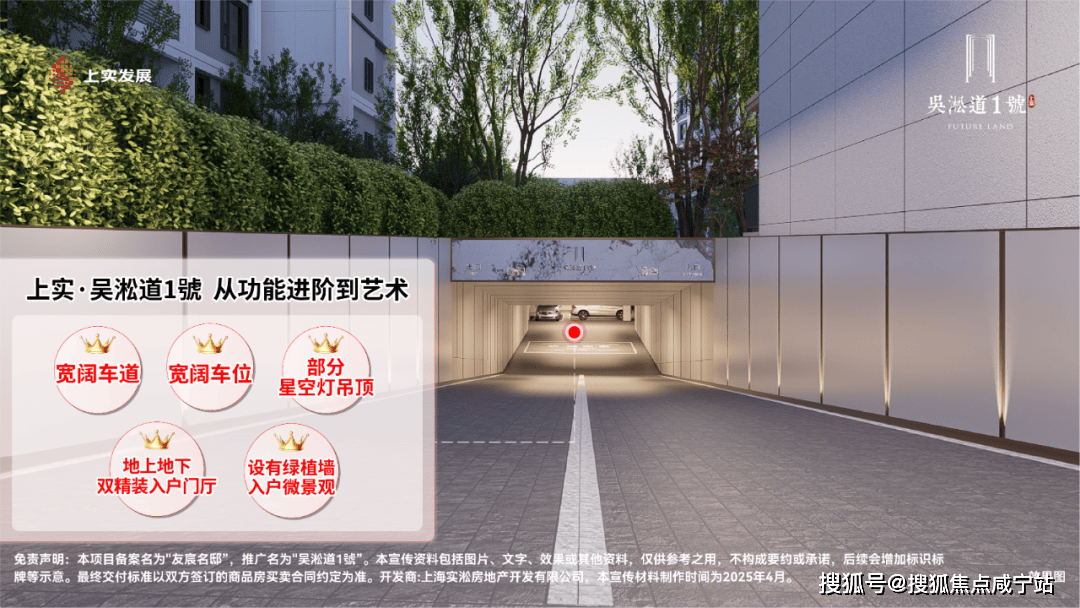 当多数地库还停留在满足基础功能性阶段,吴淞道1號已将车库升维成艺术归家剧场。相比传统车库窄车道与压抑管线外露设计,项目以