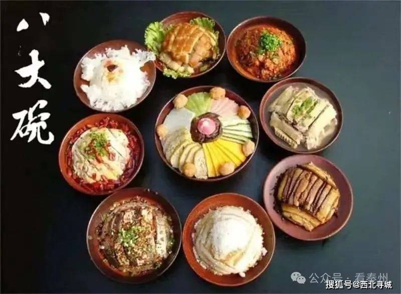 从南山下来,已到饭点,晚饭就品尝天水八大碗吧。一碗里脊、一碗红烧肉、一碗酥肉、―碗黄焖鸡、一碗杂烩、一碗豆腐、一碗粉条、一碗八宝甜饭,荤素搭配 不油不腻,它不仅承载了天水人记忆中的传统味道也是对当地非物质文化遗产的传承。